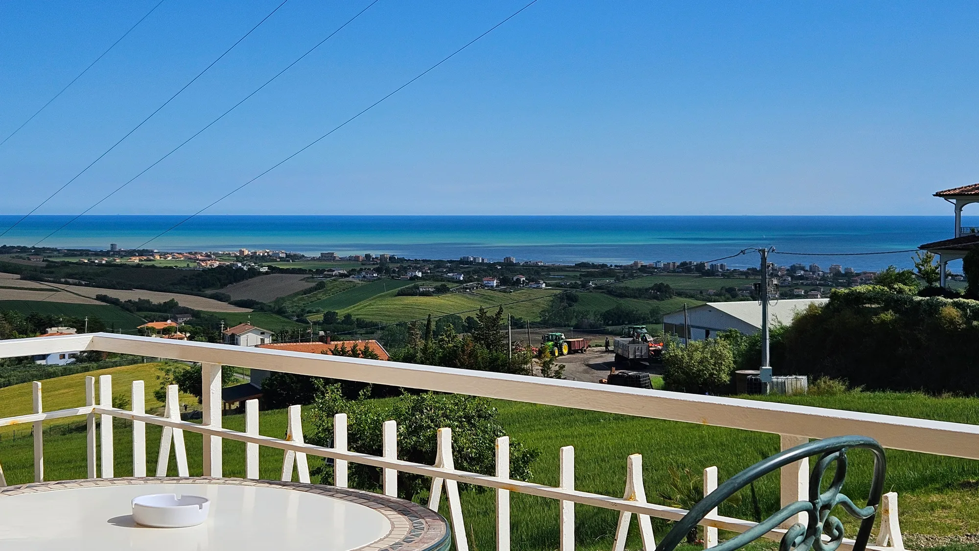 Detached house for exclusive use in a hilly position with sea view just 5 km from the Adriatic coast, composed of 1 double bedroom with air conditioning and balcony, 1 double bedroom without balcony, 1 bedroom without balcony with 150 cm wide French bed, 1 bathroom with bidet and 120 cm shower, kitchen, dining room with air conditioning, 25 m2 living room with washing machine and balcony with sea view as well as the use of the external appliances which includes a veranda and a garden of 1000 m2.